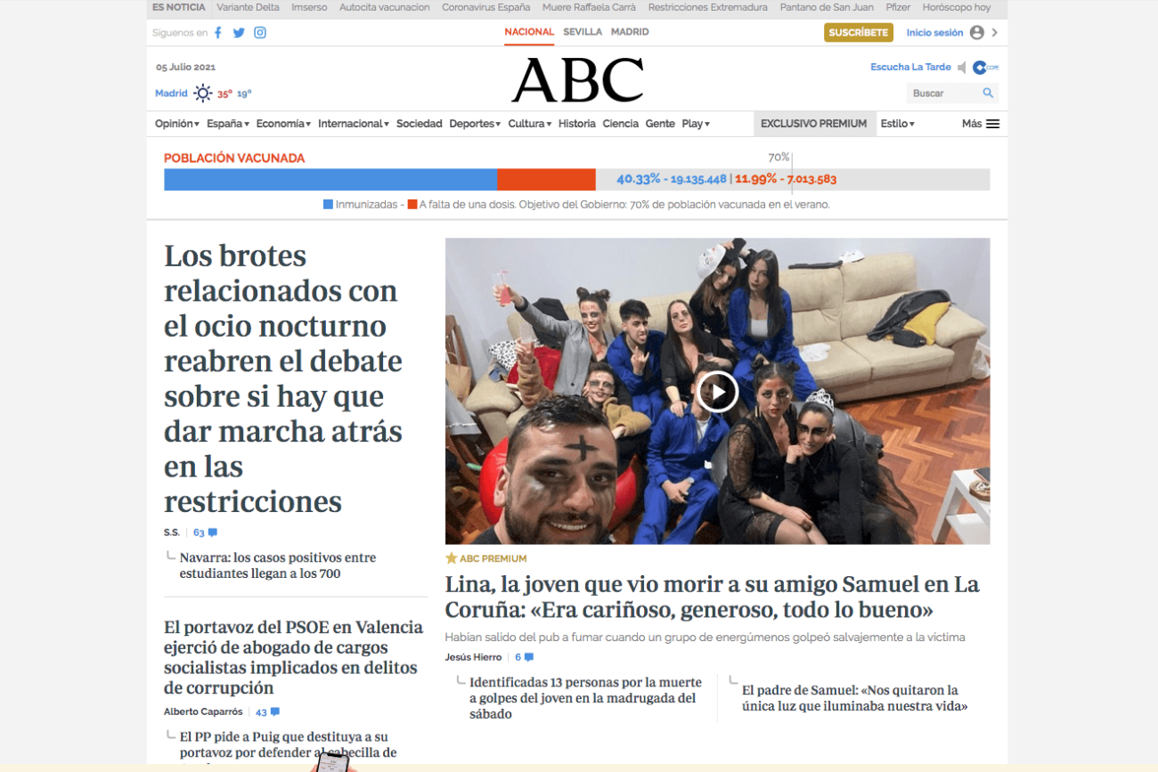 Hay medios que en su estrategia no han elegido la diversificación de sus cuentas por temática, como es el caso de ABC.es, que pone a disposición del usuario un sitio web donde podemos seguir la cuenta principal de ABC y conocer las cuentas en Twitter de cada uno de los redactores del periódico.